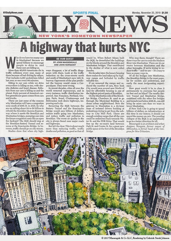 What’s the difference between the Brooklyn Bridge and the Brooklyn Queens Expressway? by John Massengale Posted on February 10, 2026 Both divide the city. One brings traffic that creates an “asthma belt.” Former Milwaukee Mayor John Norquist standing next to the Brooklyn-Queens Expressway in Brooklyn Heights. About John Massengale Architect, Urbanist, Author, Educator View all posts by John Massengale → This entry was posted in Current, New York, The Other Kind, Urbanism. Bookmark the permalink.